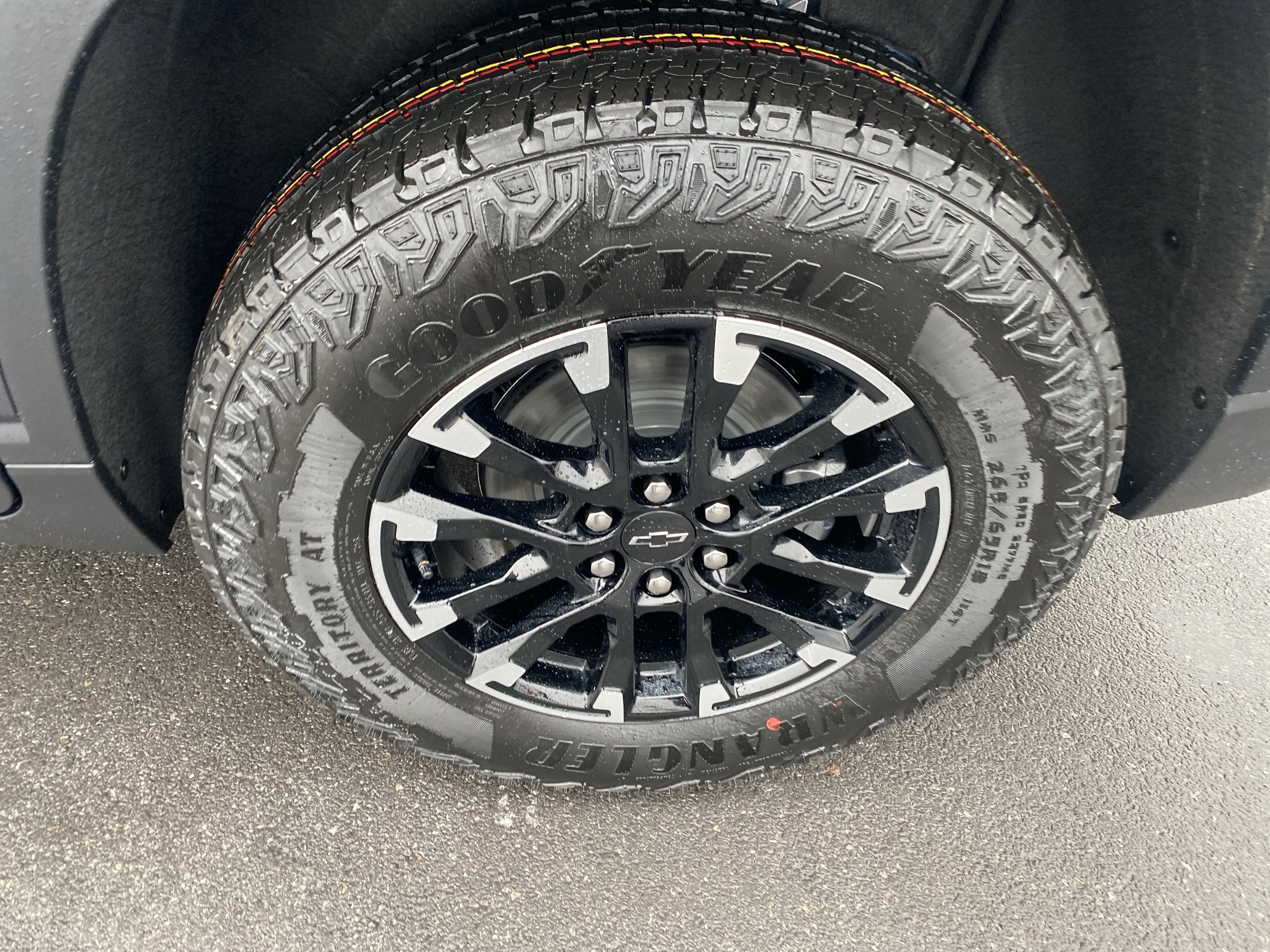 Wi-Fi Hotspot capable (Terms and limitations apply. See onstar.com or dealer for details.), Wheels, 18" (45.7 cm) High Gloss Black painted machined-face aluminum, Wheel, spare, 18" (45.7 cm) steel, Wheel moldings, mold-in-color Black, Vehicle health management provides advanced warning of vehicle issues, USB ports, 2, one type A and one type-C data/charge, located in the front area of the center console, USB ports, 2 type-A, charge-only one on each outboard location, USB ports, 2 type-A, charge-only located on the rear of the center console, Transmission, 8-speed automatic, Tires, 265/65R18SL all-terrain, blackwall.
