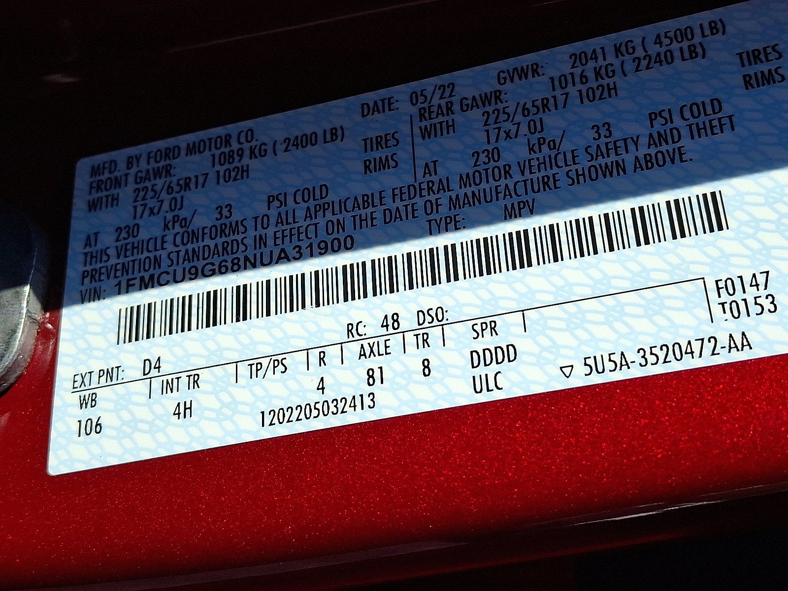 1FMCU9G68NUA31900