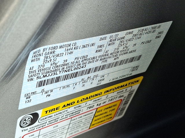 Valet Function, Trunk/Hatch Auto-Latch, Trip Computer, Transmission: 10-Speed Automatic w/SelectShift -inc: paddle activation, Transmission w/Driver Selectable Mode and Oil Cooler, Trailer Wiring Harness, Tires: 285/45R22 AS BSW, Tire Specific Low Tire Pressure Warning, Tailgate/Rear Door Lock Included w/Power Door Locks, SYNC 4 Communications & Entertainment System -inc: enhanced voice recognition, 13.2" LCD capacitive touchscreen in center stack w/swipe capability, wireless phone connection, cloud connected, 911 Assist, wireless Apple CarPlay/Android Auto compatibility, digital owner's manual, conversational voice command recognition and SYNC AppLink w/app catalog which lets you control some of your favorite compatible mobile apps w/your voice, It is compatible w/select smartphone platforms, Commands may vary by phone and AppLink software.